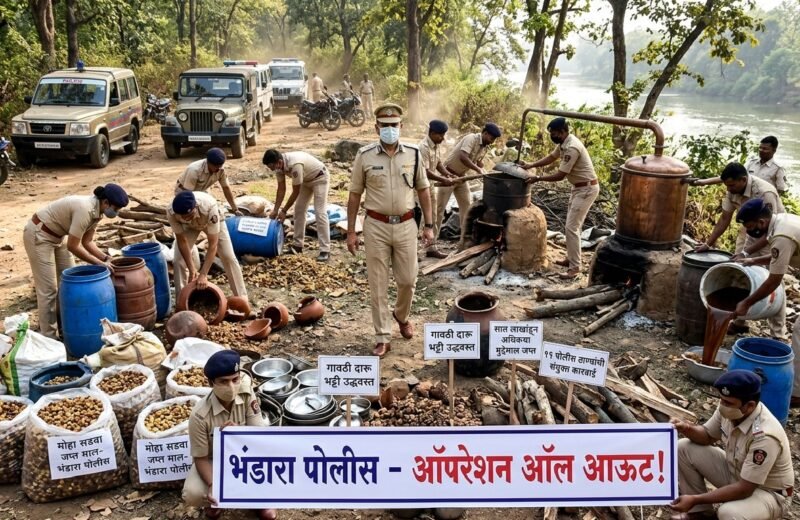 भंडारा पोलिसांचा ‘ऑपरेशन ऑल आऊट’! ११ पोलीस ठाण्यांचा एकाच वेळी प्रहार; ७ लाखांहून अधिकचा मुद्देमाल जप्त पोलीस अधीक्षक नूरुल हसन यांच्या आदेशाने दारू माफ्यांचे कंबरडे मोडले; गावठी दारूचे ‘भट्टी’ अन् ‘सडवा’ उद्ध्वस्त!