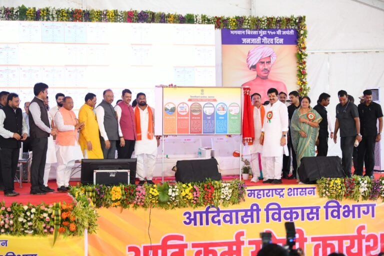 मुख्यमंत्री श्री. फडणवीस म्हणाले की, आदिवासी समाजासाठी ५४ हजार कुटुंबांना घरे, नळांद्वारे पाणी, उपचारासाठी दवाखाने, वसतिगृह अशा अनेक सुविधा वेगाने पूर्ण करण्याचे नियोजन आहे. पंतप्रधान नरेंद्र मोदी यांनी आदिवासी विकासासाठी ज्या योजना व उपक्रम आणले, तशी भरीव कामगिरी त्यापूर्वी झालेली नाही. आदी कर्मयोगी योजनेतून जिल्ह्यातील ३६६ गावांची निवड झाली आहे. योजनेतून राज्यातील ३० लाख युवकांना प्रशिक्षित करण्यात येणार आहे. त्यातून स्थानिक नेतृत्वाचा विकास होणार आहे.