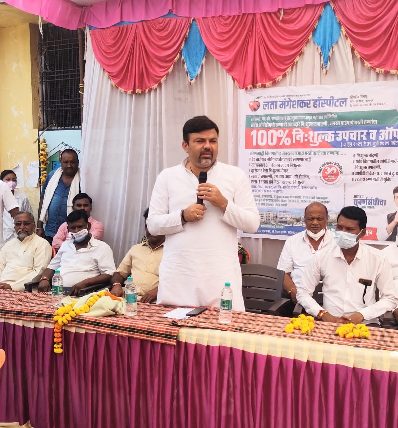 “ग्रामीण भागातील रुग्णांना अत्याधुनिक आरोग्य सेवेचा लाभ मिळून त्यांचे आरोग्य चांगले रहावे म्हणून काटोल-नरखेड क्षेत्रात नि:शुल्क रोगनिदान व रुग्णभरती शिबिरे आयोजित करण्यात येत आहेत. लता मंगेशकर हॉस्पिटल, हिंगणा रोड, नागपूरच्या माध्यमातून ‘डॉक्टर आपल्या दारी’ आणून रुग्णांना मदतीचा हात देण्याचा आपला प्रयत्न आहे. अशी शिबिरे आपल्या भागात या आधीसुद्धा आयोजित केलेली होती. या रुग्णालयातील अत्याधुनिक तंत्रज्ञान व उपकरणांचा फायदा ग्रामीण भागातील लोकांनासुद्धा व्हायला पाहिजे, हे सुध्दा या शिबिराचे एक उद्दिष्ट आहे. महात्मा ज्योतिबा फुले जन आरोग्य योजनेअंतर्गत निःशुल्क हृदय उपचार व हृदय शस्त्रक्रियासुद्धा लता मंगेशकर हॉस्पिटल, सीताबर्डी येथे करण्यात येणार आहे. सर्वात खर्चिक असलेल्या दंत विकारांसाठी आपल्या दंत महाविद्यालयाची दंत उपचार बससुद्धा रुग्णसेवेची आलेली आहे. आजकाल डेंग्यूचे मोठ्या प्रमाणात रुग्ण दिसून येत आहेत. डेंग्यूचा फैलाव थांबविणे गरजेचे आहे. मोठ्या प्रमाणात रक्तदान करून गरजूंना मदत करावी. ज्यावेळी कोरोनाच्या गंभीर समस्येमुळे जनजीवन विस्कळीत झाले होते, त्यावेळीसुद्धा काटोल-नरखेड क्षेत्रातील कोविडग्रस्त रुग्णांना लता मंगेशकर हॉस्पिटलच्या माध्यमातून नि:शुल्क सेवा प्रदान करण्यात आली होती, हे सर्वांना माहीत आहेच. कोरोनाच्या तिसऱ्या संभावित लाटेचा धोका बघता, प्रत्येकाने सोशल डिस्टन्स ठेऊन मास्कचा वापर करावा. आरोग्याकडे दुर्लक्ष करू नये. काटोल-नरखेड क्षेत्रातील रुग्णांच्या सेवेसाठी आपण सदैव तत्पर आहोत”, असे प्रतिपादन काटोल-नरखेडचे माजी आमदार डॉ. आशिष देशमुख यांनी केले. भिष्णूर येथील सांस्कृतिक भवन येथे त्यांनी आयोजित केलेल्या ‘नि:शुल्क रोगनिदान, रुग्णभरती व रक्तदान शिबिराच्या’ उदघाटनप्रसंगी ते बोलत होते.
