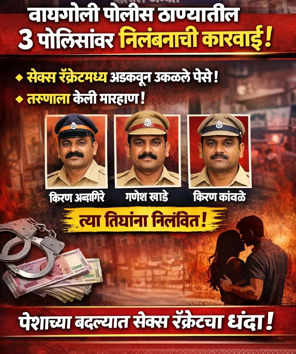 खाकीला काळिमा! सेक्स रॅकेटमध्ये अडकवून पैसे उकळणाऱ्या वायगोलीतील ३ पोलिसांचे निलंबन