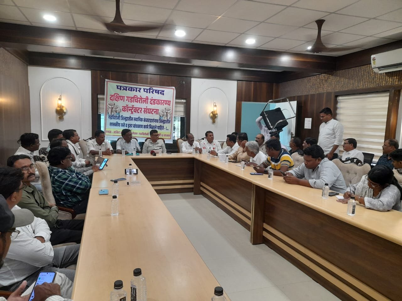 *व गडचिरोली जिल्ह्यात इतर कोणत्याही कंपनीचे बोगस कामे खपवून घेतले जाणार नाही अशी भूमिका दक्षिण गडचिरोली कॉन्ट्रॅक्टर संघटना यांनी घेतली आहे व वेळ पडेल तर सर्व कंत्राटदार संघटनेच्या वतीने लवकरच रस्त्यावर सुद्धा उतरण्याची तयारी व उपोषण व चक्का जाम सुद्धा करण्याची भूमिका सर्व कंत्राटदार संघटना पदाधिकारी कार्यकर्ते यांनी घेतले आहे यामुळे गडचिरोली जिल्ह्यातील दक्षिण गडचिरोली दंडकारन्य कॉन्ट्रॅक्टर संघटन यांनी पत्रकार परिषद घेऊन आज प्रामुख्याने सांगितले या बोगस कंपनीच्या माध्यमातून राज्याचे मुख्यमंत्री तथा जिल्ह्यचे पालकमंत्री देवेंद्रजी फडणवीस यांना बदनाम करण्याचा कटकारस्थान सार्वजनिक बांधकाम विभागाने सुरु केलेला आहे व सदर बांधकाम विभागाचे हुकूमशाही अन्याय आपण सहन करणार नाही असे प्रतिपादन दक्षिण दंडकारण्य कंत्राटदार संघटना सल्लागार डॉ प्रणय भाऊ खुणे यांनी परिषदेत प्रतिपादन केले गडचिरोली जिल्ह्यातील सर्व कॉन्ट्रॅक्टर संघटनेच्या वतीने सदर व्यथा राज्य शासनाच्या समोर मांडल्या जाणार आहे व जिल्ह्यचे पालकमंत्री, राज्याचे मुख्यमंत्री नामदार देवेंद्र फडणवीस, राज्याचे उपमुख्यमंत्री नामदार अजितदादा पवार,उपमुख्यमंत्री नामदार एकनाथजी शिंदे, यांच्यासमोर सुद्धा सदर विषय दक्षिण दंडकारण्य कंत्राटदार संघटना भेट घेऊन मांडणार आहे व पुढील रणनीती तयार करण्यात येत आहे व बांधकाम विभागाने नुकताच पूर्वणीयोजित टेंडर केलेले एकूण पाच कंत्राट रद्द करावे असे आवाहन दक्षिण गडचिरोली दंडकारण्य कॉन्ट्रॅक्टर संघटना कार्यकर्ते व पदाधिकारी यांनी केले आहे ,यावेळी संघटनेचे अध्यक्ष साईनाथ बोंम्मावार,सचिव अरुण भाऊ मुक्कावार,मार्गदर्शक डॉ, प्रणय भाऊ खुणे, अरविंद भाऊ कात्रटवार,नानाभाऊ नाकाडे सल्लागार नितीन भाऊ वायलालवार सह अध्यक्ष धनंजय पडिशाला सहसचिव राकेश गुब्बावार, प्रवक्ता अश्विन मेड्डीवार, सहसचिव गौतम अधिकारी, राजू मेहता अजय तुम्मावार, सुकलाल सरकार, मंगेश देशमुख,मनोज पवार,रमेश गंपावर अजय गोरे व पदाधिकारी कार्यकर्ते मोठ्या संख्येने उपस्थित होते,
