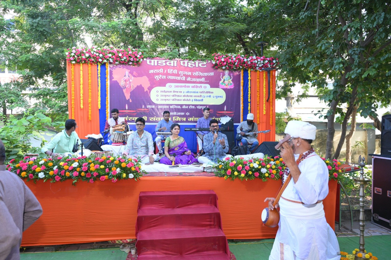चंद्रपूर जिल्ह्यातील कलावंतांना एका व्यासपीठावर आणून भव्य सांस्कृतिक महोत्सवाचे आयोजन करा — आमदार श्री. सुधीर मुनगंटीवार यांचे आवाहन भौतिक विकासाबरोबरच मानसिक आणि सांस्कृतिक विकास महत्त्वाचा चंद्रपूर येथे ‘पाडवा पहाट’ थाटात संपन्न