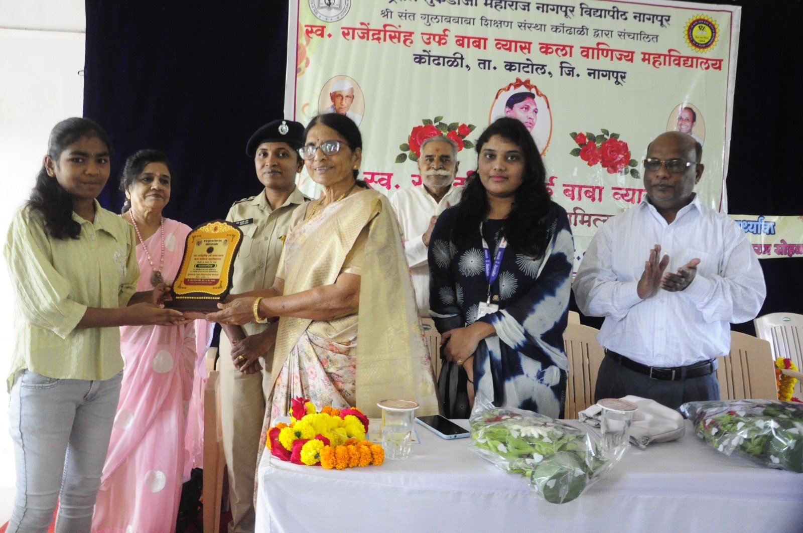 कार्यक्रम की मुख्य अतिथि कोंढाळी पुलिस स्टेशन की उपनिरीक्षक गौरी ऊईके ने विद्यार्थियों को साइबर अपराध, आत्मरक्षा (Self Defence) और व्यक्तिगत सुरक्षा पर मार्गदर्शन दिया।