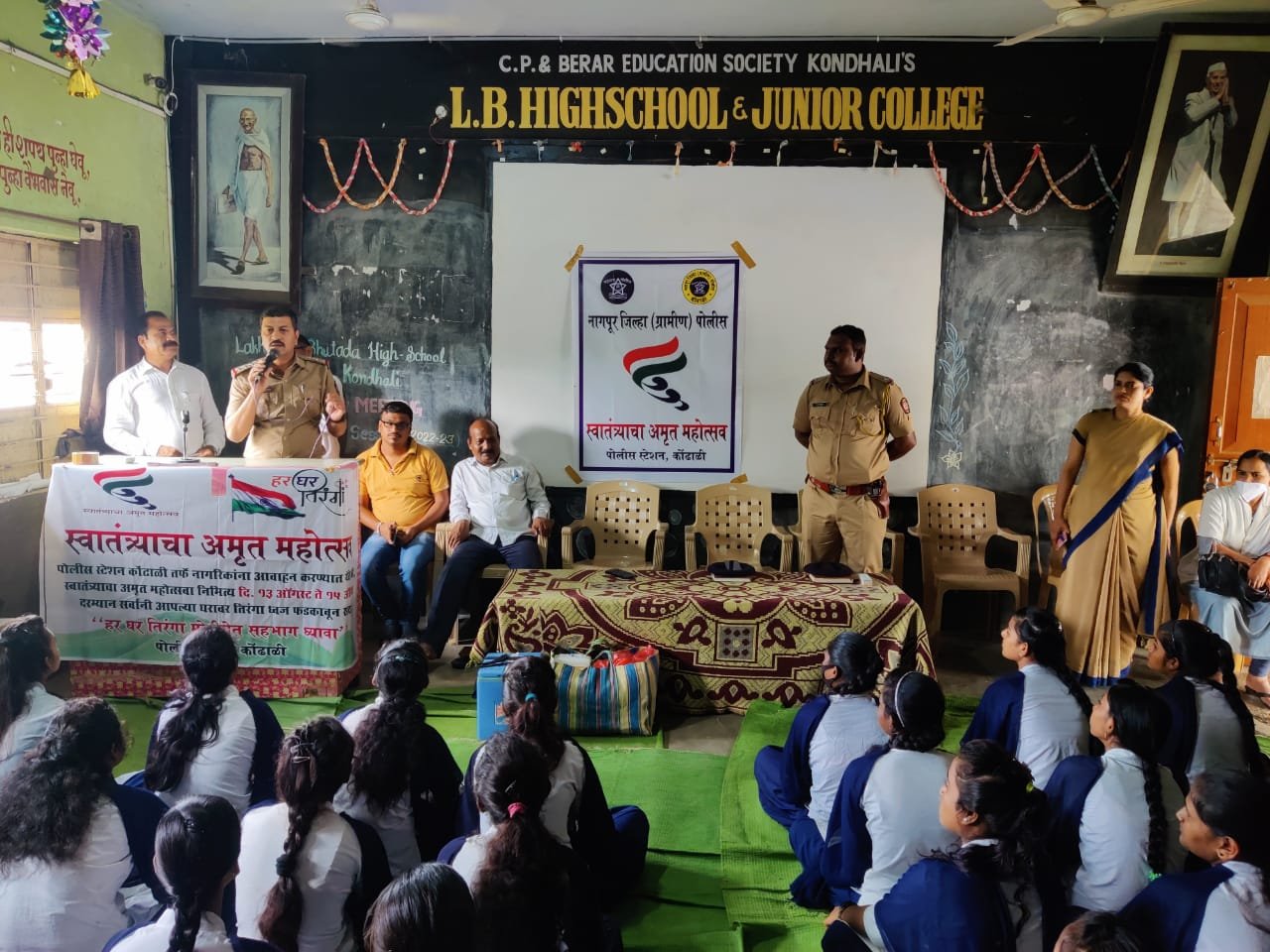 आजादी के अमृत महोत्सवी वर्ष के अवसर पर कोंढाली पुलीस स्टेशन तथा लखोटीया भुतडा हायस्कूल-कनिष्ठ महाविद्यालय तथा सी बी एस ई हायस्कूल में कोंढाली पुलीस स्टेशन थानेदार अजीत कदम, उप निरिक्षक राम ढगे, द्वारा यहां के छात्र-छात्राओं को साइबर क्राइम जागरूकता के साथ साथ हर घर तिरंगा झेंडा लगाने तथा तिरंगे झंडे का अवमान ना हो इस विषय पर संगोष्ठी आयोजित की गई। जिसमें वक्ताओं ने साइबर क्राइम से बचने के महत्वपूर्ण सुझाव और उपाय दिए। साथ ही हर घर झेंडा के विषय पर जागरूकाता के विषयों पर भी जानकारी दी गयी।