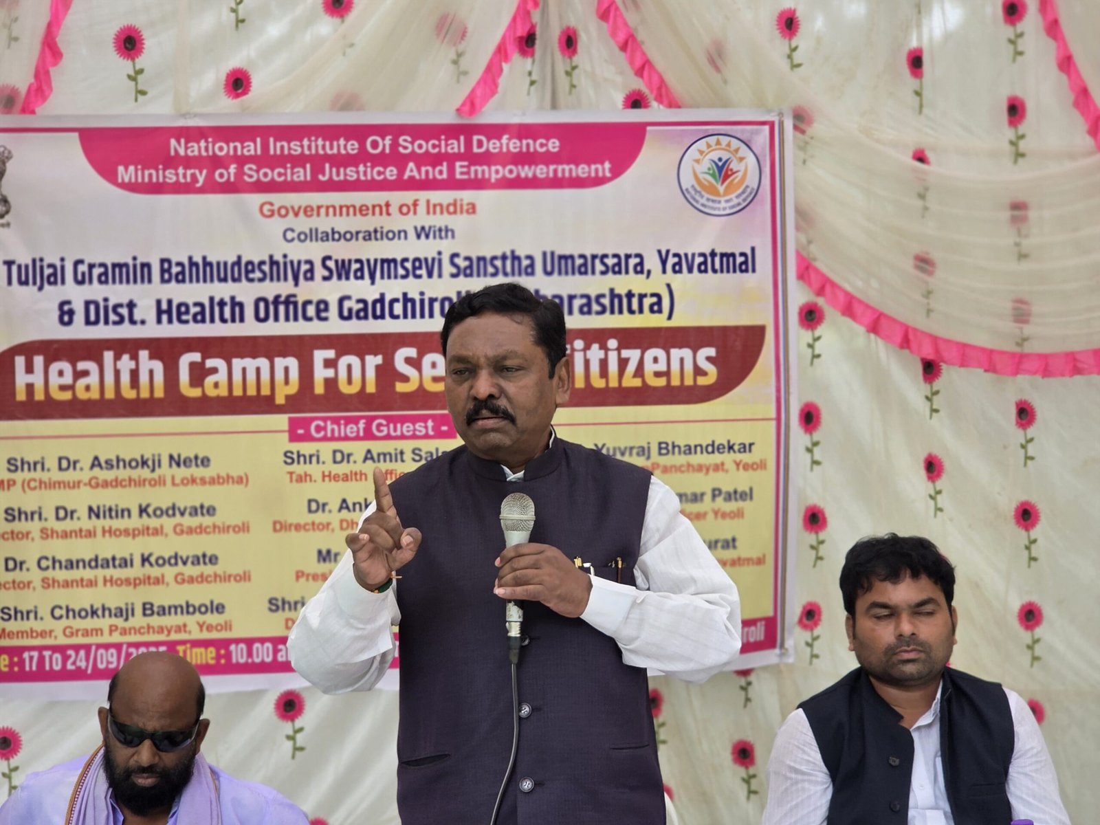 जेष्ठ नागरिकांच्या आरोग्य सुरक्षेसाठी देशाचे लोकप्रिय पंतप्रधान नरेंद्रजी मोदी यांनी ‘आयुष्मान भारत योजना’ अस्तित्वात आणली, ज्यामुळे ग्रामीण व सामान्य नागरिकांनाही मोठ्या प्रमाणावर मोफत व सुलभ आरोग्यसेवा मिळू लागली आहे. मोदीजींच्या दूरदृष्टीमुळे आज देशात आरोग्य क्षेत्रात मोठी क्रांती घडली असून, स्वच्छता, संतुलित आहार व सकारात्मक विचारसरणी यावर भर दिला जात आहे. यामुळेच नागरिकांचे आयुष्य निरोगी, सुरक्षित व समाधानकारक होत आहे. जेष्ठ नागरिकांनी या उपक्रमांचा अवश्य लाभ घ्यावा.”असे प्रतिपादन मा.खा.डॉ. अशोकजी नेते यांनी केले.