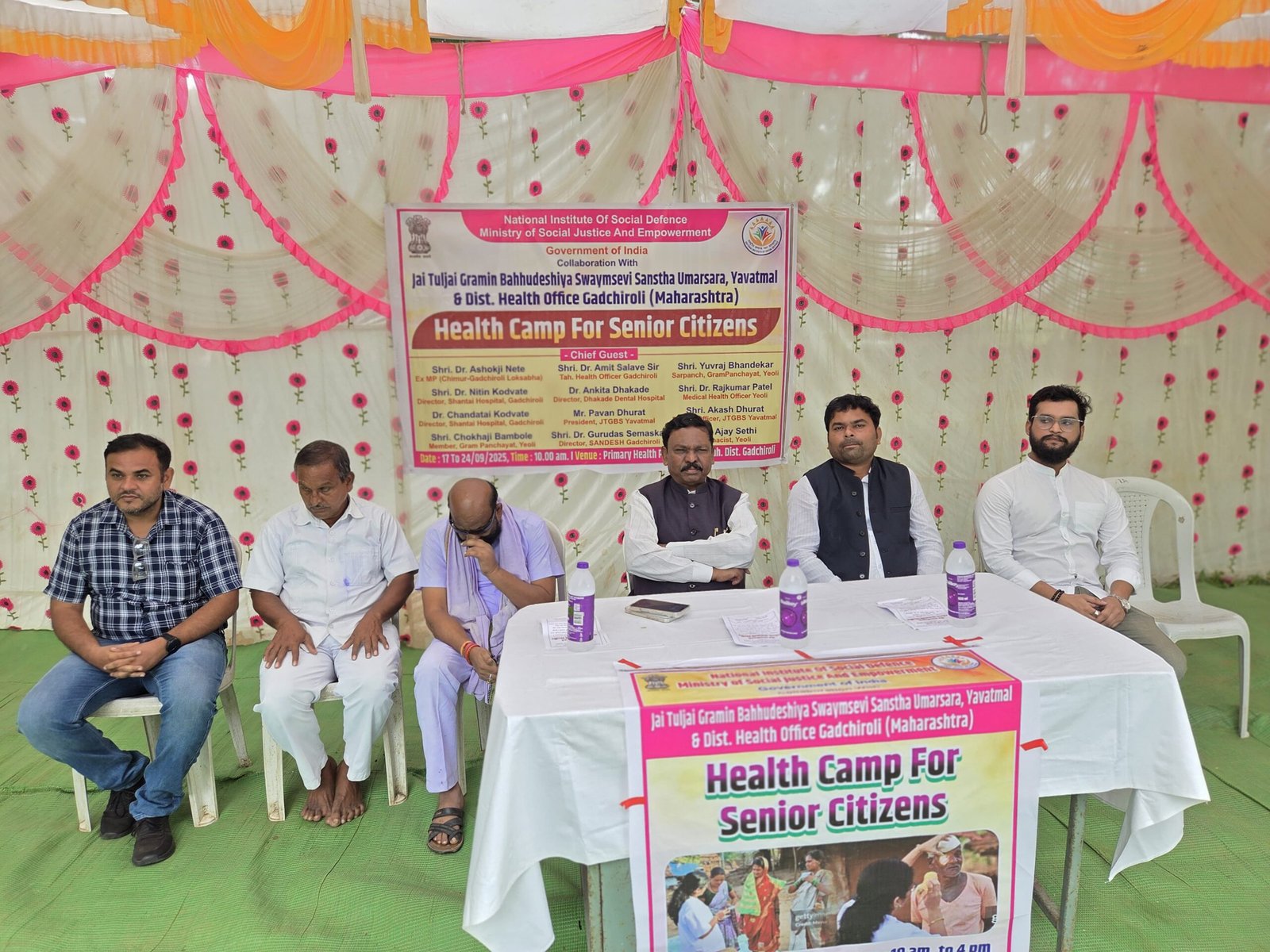 येवली (ता. गडचिरोली) येथे जय तुळजाई ग्रामीण बहुउद्देशीय स्वयंसेवी संस्था, उमरसरा, जि. यवतमाळ व नॅशनल इन्स्टिट्यूट ऑफ सोशल डिफेन्स (मिनिस्ट्री ऑफ सोशल जस्टीस अँण्ड एम्पावरमेंट) यांच्या सहकार्याने तसेच संदेश गडचिरोली व आरोग्य पथक, येवली यांच्या संयुक्त विद्यमाने प्राथमिक आरोग्य उपकेंद्र, येवली येथे जेष्ठ नागरिकांसाठी आरोग्य तपासणी शिबिर आयोजित करण्यात आले.
