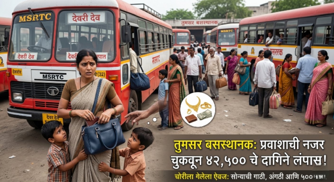 मिळालेल्या माहितीनुसार, देवरी देव येथील रहिवासी सौ. रेखा सहद पारधी (३२) या १५ मार्च २०२६ रोजी आपल्या मुलांसह सासरी जाण्यासाठी तुमसर बसस्थानकावर आल्या होत्या. त्यांच्या हॅन्डबॅगमध्ये एक लहान पर्स होती, ज्यात १० वर्षांपूर्वी लग्नात मिळालेले सोन्याचे दागिने आणि रोख रक्कम अत्यंत जपून ठेवली होती.