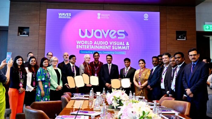 मुख्यमंत्री देवेंद्र फडणवीस यांच्या उपस्थितीत वेव्हज् २०२५ परिषदेमध्ये आठ हजार कोटी रुपयांचे विविध सामंजस्य करार करण्यात आले. यापैकी सिडको आणि युनिव्हर्सिटी ऑफ वेस्टर्न ऑस्ट्रेलिया यांच्या दरम्यान १५०० कोटी रुपयांचा करार करण्यात आला. यावेळी राज्याच्या मुख्य सचिव सुजाता सौनिक, उद्योग विभागाचे सचिव डॉ.अन्बलगन, सिडकोचे अध्यक्ष व व्यवस्थापकीय संचालक विजय सिंघल, एमआयडीसीचे मुख्य कार्यकारी अधिकारी पी.वेलारासू, उद्योग विकास आयुक्त दीपेंद्र सिंह कुशवाह आदी उपस्थित होते.
