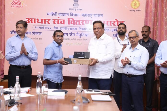 महाराष्ट्र आधार नोंदणी आणि प्रमाणीकरणामध्ये आघाडीवर आहे. ही गोष्ट खरच अभिमानाची आणि समाधानाची बाब आहे. राज्यात कार्यरत असलेल्या 6,700 आधार किट्सपैकी 2,700 किट्स केवळ माहिती तंत्रज्ञान संचालनालया तर्फे व्यवस्थापित केल्या आहेत. त्यामुळे आधार सेवा पुरवठादारांमध्ये राज्य आघाडीवर आहे. आज 2,911 नवीन आधार नोंदणी किट्स वितरित केल्या जात असून, त्यामुळे आधार सेवा देण्याची क्षमता लक्षणीयरीत्या वाढेल. या किट्समुळे महानगरी भागांपासून अगदी दुर्गम गावांपर्यंत प्रत्येक नागरिकाला आधार नोंदणी आणि अद्ययावत सेवा सहज मिळणार आहेत. डिजिटल सेवांची गती वाढवण्याच्या दृष्टीने शासन विविध योजनांची अंमलबजावणी करत आहे.