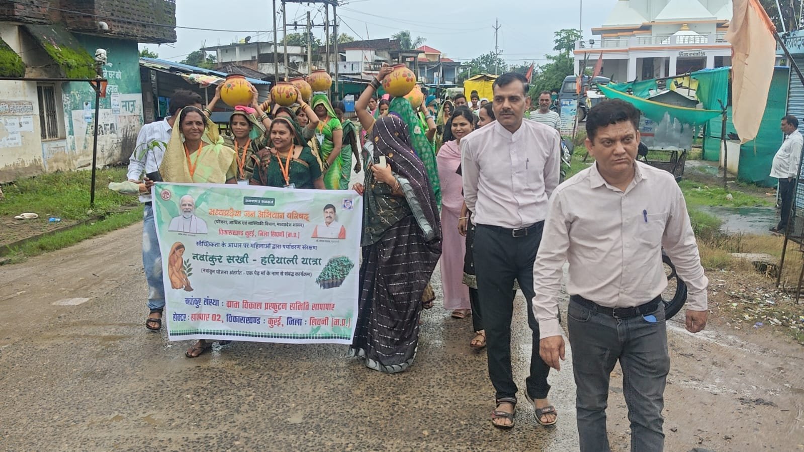 मध्य प्रदेश जन अभियान परिषद द्वारा संचालित नावांकुर सखी योजना के अंतर्गत आज विकासखंड कुरई जिला सिवनी के ग्राम बादलपार में नवांकुर सखी हेतु चयनित महिलाओं के द्वारा ग्राम में पर्यावरण संरक्षण को लेकर हरियाली यात्रा निकाली गई । यात्रा का शुभारंभ ग्राम पंचायत भवन में एक कार्यक्रम के आयोजन के साथ किया गया कार्यक्रम में जिला समन्वयक श्रीमान सौरभ शुक्ला जी जनपद क्षेत्र की पूर्व अध्यक्ष व वर्तमान जनपद सदस्य श्रीमती सविता कवरेती जी , सरपंच श्रीमती अनीता कुडापे , सभी परामर्शदाता व नावांकुर संस्थाएं , गणमान्य नागरिकों के साथ ही नावांकुर सखियों के रूप में अन्य ग्रामों से आई महिलाओं ने भी सहभागिता की । कार्यक्रम का संचालन नवांकुर संस्था की प्रतिनिधि शिवकुमारी वरमैया द्वारा किया गया । कार्यक्रम की रूपरेखा एवं अवधारणा बताते हुए विकासखंड समन्वयक कुलदीप सिंह ठाकुर ने कहा कि जन अभियान परिषद द्वारा यह अभिनव योजना संचालित की जा रही है जिसके तहत जागरुक एवं सक्रिय महिलाओं का चयन नवांकुर सखी के रूप में किया गया है एक सेक्टर में 110 महिलाओं को चयनित कर उनके माध्यम से इस योजना का संचालन किया जाएगा इस योजना के तहत प्रत्येक सखियों को 11 पौधे भेंट किए जाएंगे ये पौधे इन महिलाओं के द्वारा अन्य महिलाओं को भेंट कर उपयुक्त स्थान पर रोपे जाने व देखभाल कर बृक्ष बनाने की योजना है । इस प्रकार सम्पूर्ण विकासखंड में योजना अंतर्गत 5500 पौधे रोपने व उन्हें सुरक्षा प्रदान करने की योजना है ।