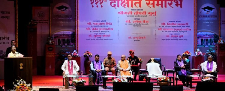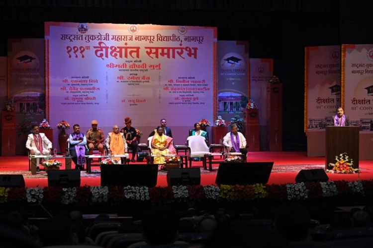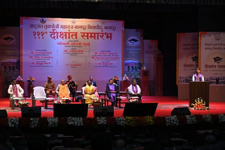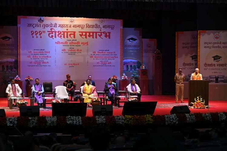 राष्ट्रपती द्रौपदी मुर्मू यांच्या प्रमुख उपस्थितीत कविवर्य सुरेश भट सभागृहात राष्ट्रसंत तुकडोजी महाराज नागपूर विद्यापीठाच्या 111 व्या दीक्षान्त समारंभाचे आयोजन करण्यात आले. यावेळी त्या बोलत होत्या. कार्यक्रमाच्या अध्यक्षस्थानी राज्यपाल तथा कुलपती रमेश बैस होते तर केंद्रीय रस्ते वाहतूक व महामार्ग मंत्री नितीन गडकरी, उपमुख्यमंत्री देवेंद्र फडणवीस, उच्च व तंत्रशिक्षणमंत्री चंद्रकांतदादा पाटील, कुलगुरू डॉ. सुभाष चौधरी आदी यावेळी उपस्थित होते.