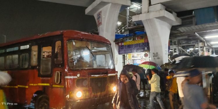 पावसात अडकलेल्यांसाठी ‘एसटी’ आली धावून रेल्वे स्थानकापासून निवासी भागापर्यंत प्रवाशांना मोफत सेवा देण्याचे नियोजन