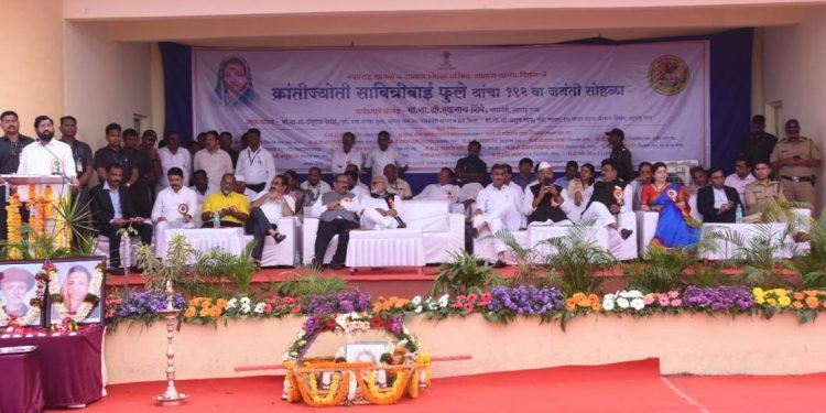 क्रांतिज्योती सावित्रीबाई फुले यांच्या जयंतीनिमित्त त्यांचे जन्मगाव असलेल्या नायगाव येथे आयोजित कार्यक्रमात मुख्यमंत्री श्री. शिंदे बोलत होते. याप्रसंगी पालकमंत्री शंभूराज देसाई, सहकार व इतर मागास बहुजन कल्याण मंत्री अतुल सावे, राज्य महिला आयोगाच्या अध्यक्षा रुपाली चाकणकर, खासदार श्रीनिवास पाटील, आमदार सर्वश्री छगन भुजबळ, महादेव जानकर, मकरंद पाटील, माजी राज्यमंत्री विजय शिवतारे, नायगावच्या सरपंच साधना नेवसे आदी उपस्थित होते.