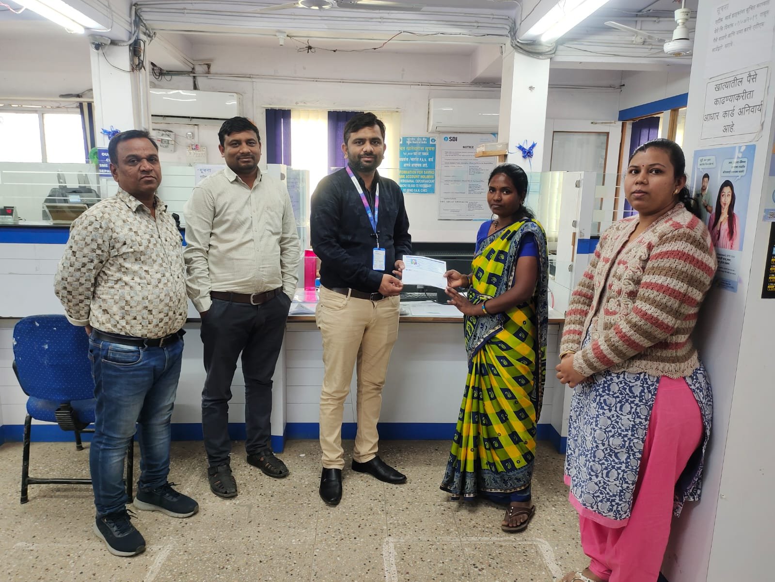कोंढाळी येथील स्टेट बैक आँफ इंडिया शाखेचे बचतखाता ग्राहक प्रकाश कुंभारे यांचे निधन झाले त्यांच्या पत्नी अनिता कुंभारे यांना स्टेट बैक आँफ कोंढाळी शाखेतर्फे तातडीने प्रधानमंत्री जिवन ज्योती योजना अंतर्गत दोन लाख रूपयांची मदत मिळवून देण्यात आली.