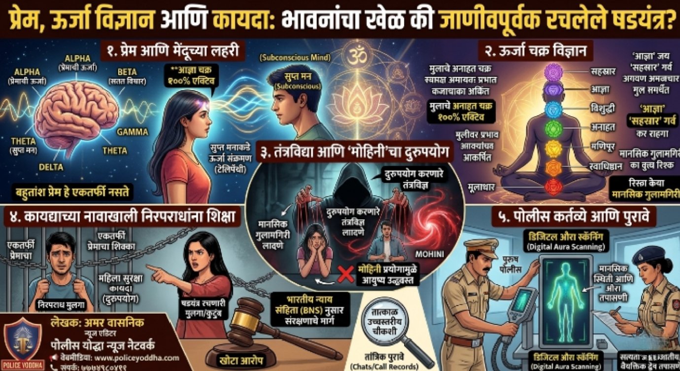 मानवी जीवन हे भावना आणि ऊर्जा यांच्या गुंतागुंतीच्या जाळ्याने विणलेले आहे. प्रेम ही संकल्पना जेवढी नैसर्गिक आहे, तेवढीच ती विज्ञानाच्या आणि ऊर्जेच्या स्तरावर गुंतागुंतीची आहे. अनेकदा ‘एकतर्फी’ प्रेमाचा शिक्का मारून तरुणांना कायद्याच्या कचाट्यात अडकवले जाते, परंतु यामागे मेंदूच्या लहरी आणि ऊर्जा चक्रांचे कोणते शास्त्र दडलेले आहे? आणि भारतीय न्याय संहितेनुसार यात संरक्षणाचे काय काय मार्ग आहेत? याचा हा सखोल आढावा.