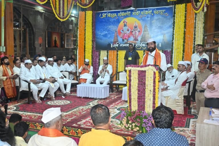 कार्तिकी यात्रा 2025च्या अनुषंगाने श्री विठ्ठल रुक्मिणीची शासकीय महापूजा उपमुख्यमंत्री एकनाथ शिंदे त्यांच्या पत्नी लता एकनाथ शिंदे व मानाचे वारकरी रामराव वालेगावकर, सुशिलाबाई रामराव वालेगावकर यांच्या हस्ते पार पडली. यावेळी मंदिर समितीच्या वतीने करण्यात आलेल्या सत्कारप्रसंगी उपमुख्यमंत्री शिंदे बोलत होते.