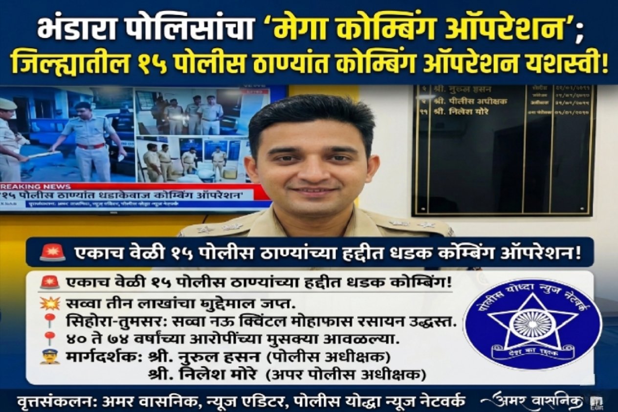 भंडारा जिल्ह्याची ‘खाकी’ सुसाट! १५ पोलीस ठाण्यांच्या हद्दीत एकाच वेळी प्रचंड मोठी छापेमारी