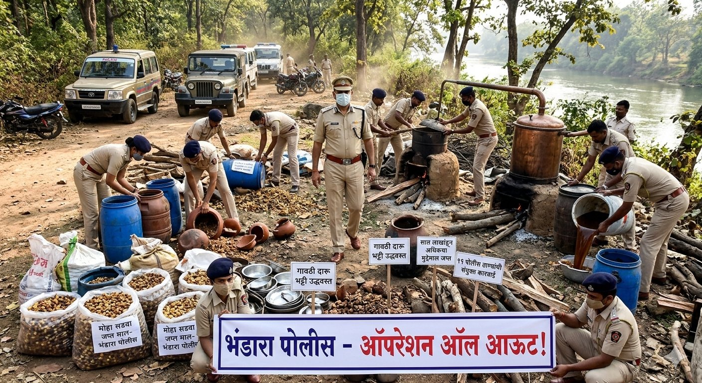जिल्ह्यातील जवाहरनगर, भंडारा, कारधा, तुमसर, आंधळगाव, सिहोरा, गोबरवाही, साकोली, पवनी, अडयाळ आणि दिघोरी या भागांतील दारू अड्ड्यांवर पोलिसांनी छापा टाकला. जिथे गावठी दारू गाळली जात होती, त्या भट्ट्या पोलिसांनी जागेवरच उद्ध्वस्त केल्या.