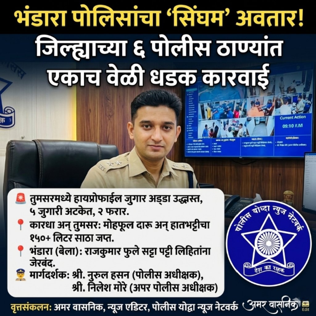 भंडारा पोलिसांचा ‘सिंघम’ अवतार! जिल्ह्याच्या ६ पोलीस ठाण्यांत एकाच वेळी धडक कारवाई