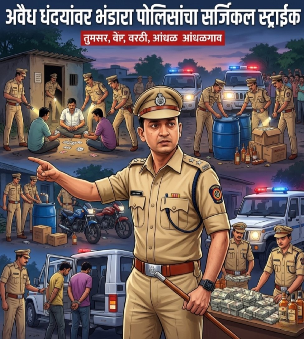 भंडारा पोलिसांचा ‘सिंघम’ अवतार! एकाच वेळी अनेक अड्डयांवर सर्जिकल स्ट्राईक; जुगार आणि दारू माफियांमध्ये मोठी खळबळ