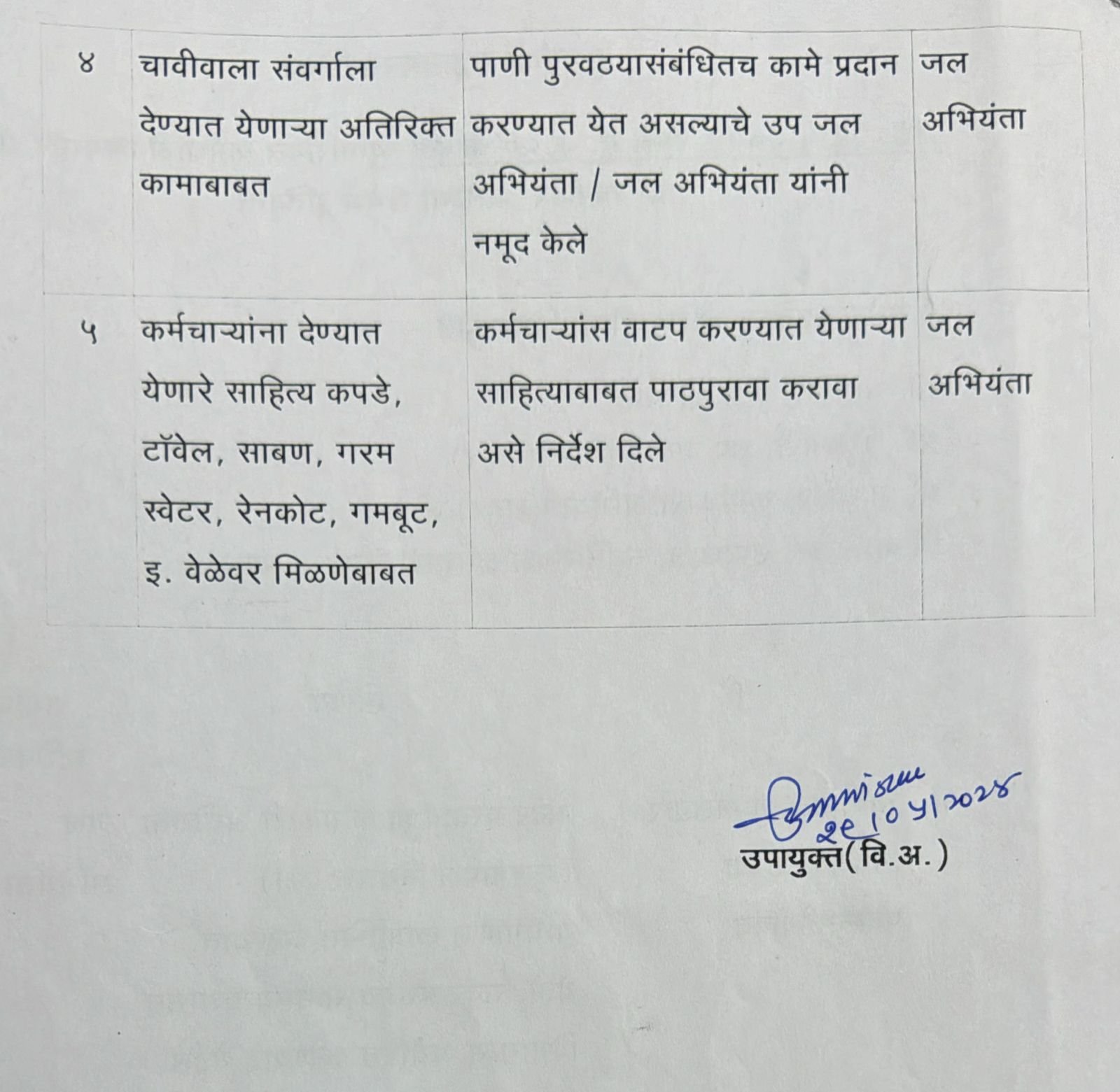 पाणी खात्यातील सर्व रिक्त पदे भरावीत यासाठी उपायुक्त (अभियांत्रिकी) यांच्यासोबतही संघटनेने बैठक घेतली होती. तथापि, जलद गतीने कार्यवाही न झाल्याने सुलुसमन संवर्गाची सुमारे ८० पदे तसेच कामगारांमधुन पदोन्नतीने सुलुसमन पदे भरण्यात येणार असल्याने, रिक्त होणारी व रिक्त असलेली कामगार संवर्गाची सर्व रिक्त पदे तात्काळ भरावीत अशी अतिरिक्त आयुक्तांकडे मागणी करण्यात आली आहे.