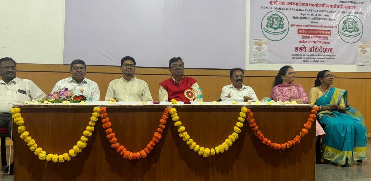मुंबई : मुंबई महानगरपालिकेच्या के.ई.एम. रुग्णालयातील CVTC सभागृहात मुंबई महानगरपालिका कार्यालयीन कर्मचारी संघटनेचे ७७वे अधिवेशन मोठ्या उत्साहात पार पडले. या अधिवेशनाला विविध विभागातील अधिकारी, कर्मचारी, तसेच कामगार संघटनांचे पदाधिकारी उपस्थित होते.