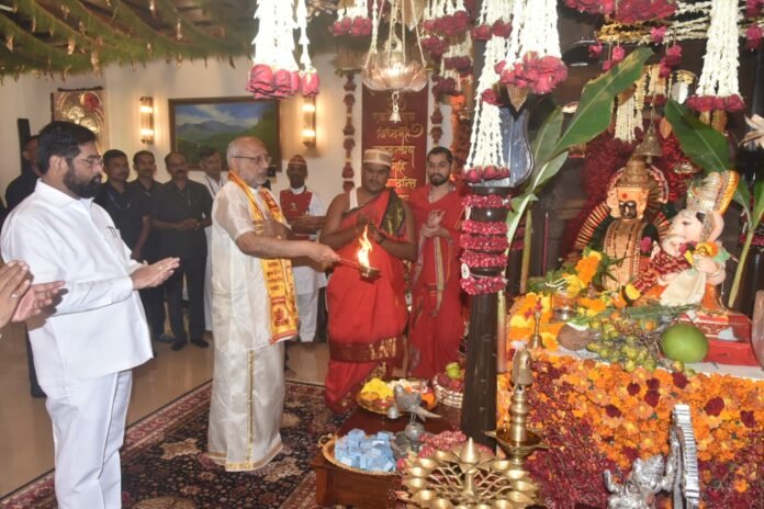 मुंबई, दि.१५ : राज्यपाल सी.पी. राधाकृष्णन यांनी आज मुख्यमंत्री एकनाथ शिंदे यांचे शासकीय निवासस्थान वर्षा येथील श्री गणेशाचे दर्शन घेतले आणि पूजन केले. याप्रसंगी त्यांच्या हस्ते श्री गणेशाची आरती करण्यात आली.