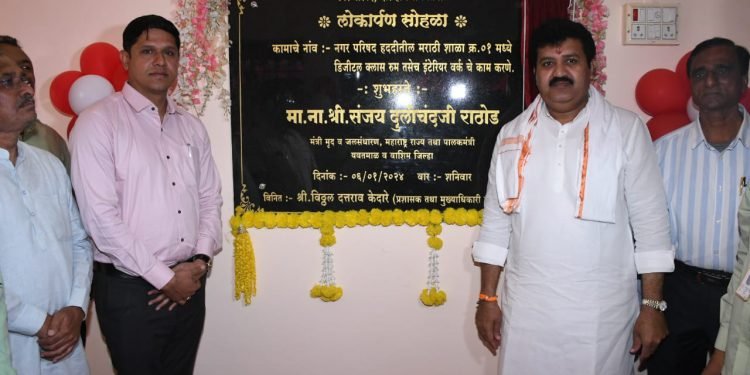 “सार्वजनिक विकास करताना मूलभूत सुविधांप्रमाणे शाळातील विद्यार्थ्यांनाही दर्जेदार सुविधा पुरविणे विकासातील एक घटक आहे. शाळेतील विद्यार्थ्यांसाठी राज्य सरकार विविध योजना राबवत आहे पालकमंत्री म्हणून शाळांचा विकास करण्याचा पुढाकार घेतला आहे. शालेय विद्यार्थ्यांना लवकरच टॅब देण्याची भूमिका आमची आहे. शिक्षणाचे सार्वत्रिकच झाले पाहिजे या भूमिकेतून काम करत आहे. येत्या काळात जिल्हा परिषद, नगर परिषद शाळांचा चेहरामोहरा बदलण्याचा संकल्प केला आहे,” असे पालकमंत्री संजय राठोड यांनी डिजिटल शाळेच्या लोकार्पण प्रसंगी सांगितले.