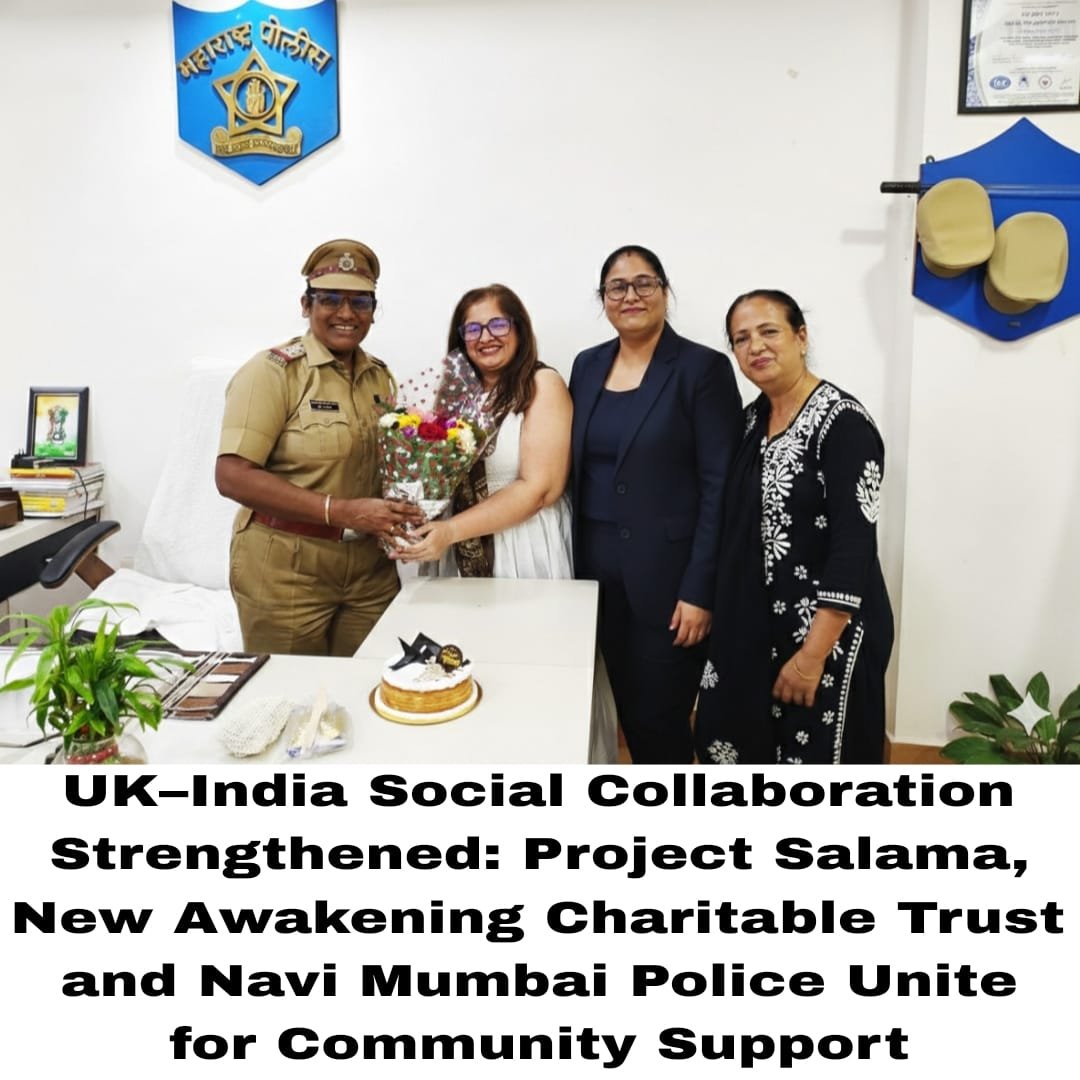 सीमापार सामाजिक आणि कायदेशीर सहाय्य अधिक बळकट करण्याच्या दिशेने एक महत्त्वपूर्ण पाऊल उचलत, यूकेस्थित प्रोजेक्ट सलामा या संस्थेच्या विश्वस्त सुमनजीत कौर आणि भारतातील नव्याने स्थापन झालेल्या न्यू अवेकनिंग चॅरिटेबल ट्रस्टच्या अध्यक्षा जस्मीत कौर यांनी नवी मुंबई पोलीस आयुक्तालयातील कामोठे पोलीस ठाण्याचे पोलीस निरीक्षक विमल बिडवे यांची संयुक्त भेट घेतली.