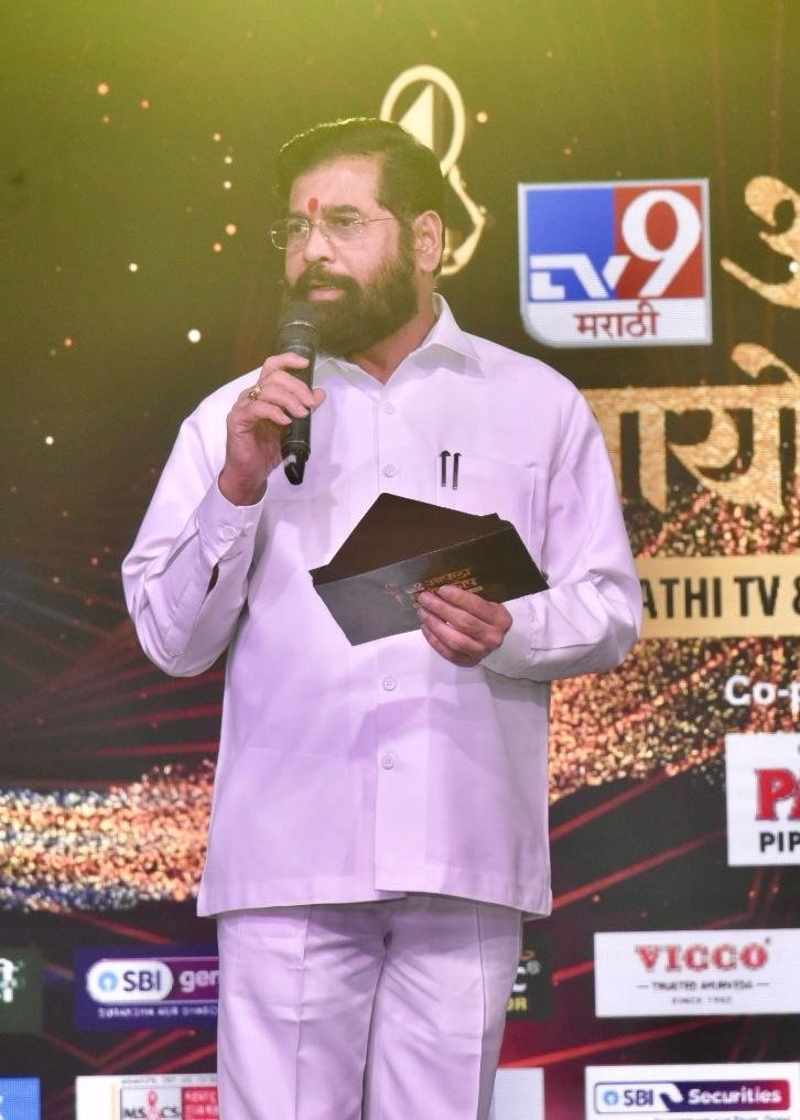 मुख्यमंत्री म्हणाले की, कलावंत हे अभिनेता, दिग्दर्शक, निर्माता अशा विविध भूमिका निभावतात. चांगले काम करणाऱ्यांच्या पाठीवर थाप दिल्याने त्यांना प्रोत्साहन मिळते. टिव्ही ९ हे देशातील मोठे नेटवर्क आहे. टिव्ही ९ चा हा पहिलाच पुरस्कार सोहळा असून त्यात मराठी कलावंतांचा पुरस्कार देऊन गौरव केल्याबद्दल त्यांनी टीव्ही ९ चे अभिनंदन केले.