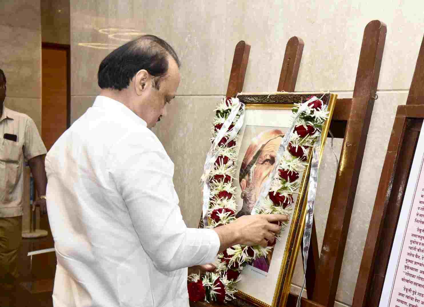 मुंबई, दि. 23 – संत गाडगे बाबा यांच्या जयंतीनिमित्त आज मंत्रालयातील तळमजल्यावर उपमुख्यमंत्री अजित पवार यांनी पुष्पहार अर्पण करुन त्यांना अभिवादन केले.