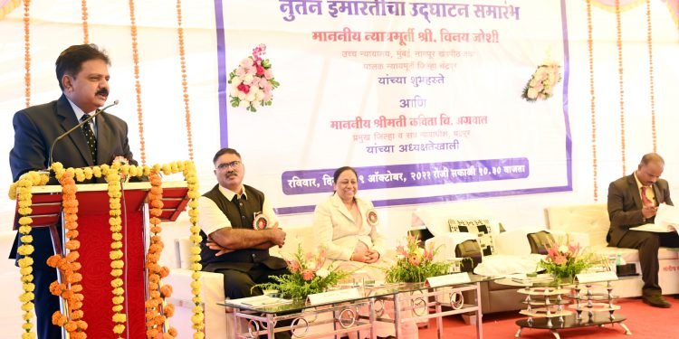 चंद्रपूर, दि. 9 : भारतीय राज्यघटनेने प्रत्येक नागरिकाला मूलभूत हक्क व कर्तव्य प्रदान केले आहे. या मुलभूत हक्काची व कर्तव्याची जपणूक करण्यासाठी न्यायव्यवस्था सक्षम असणे गरजेचे आहे. सामान्य जनतेचा न्यायप्रणालीवर विश्वास असल्यामुळे समाजाच्या तळागाळापर्यंत न्यायदानाची प्रक्रिया पोहचविण्यासाठी चांगले काम करा, असे आवाहन मुंबई उच्च न्यायालय, नागपूर खंडपीठाचे न्यायाधीश तथा चंद्रपूर जिल्ह्याचे पालक न्यायमूर्ती विनय जोशी यांनी केले.