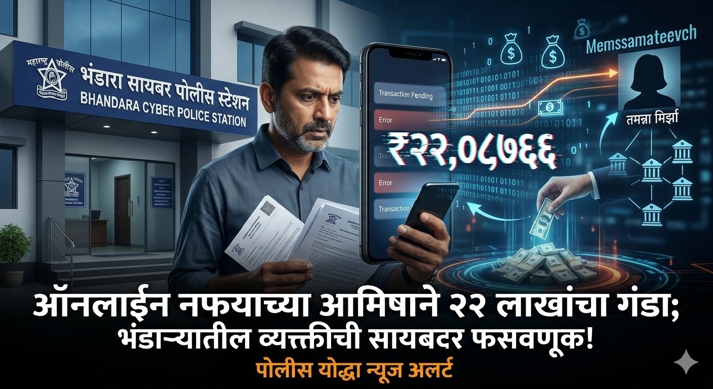 सावधान! ऑनलाईन नफ्याच्या आमिषाने भंडाऱ्याच्या व्यक्तीला २२ लाखांचा गंडा; सायबर पोलिसांत ‘तमन्ना मिर्झा’वर गुन्हा दाखल! घरबसल्या कमाईचे स्वप्न पडले महागात; सायबर भामट्यांनी रचले होते मायाजाल