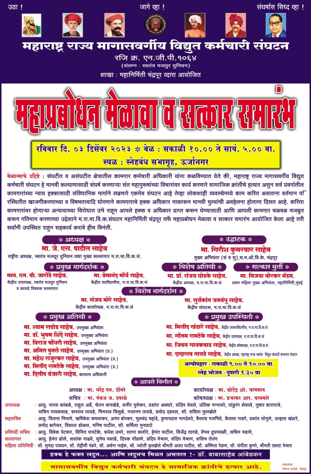 ३ डिसेंबर २०२३ ला महाप्रबोधन मेळावा चर्चासत्र कार्यक्रम साठी सभासदांनी जास्तीत जास्त संख्येने उपस्थित राहावे..