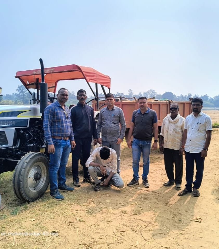 рдирджреАрдХрд╛рдард╛рд╡рд░ рдкреЛрд╣реЛрдЪрддрд╛рдЪ рддреНрдпрд╛рдВрдирд╛ рдЕрд╡реИрдз рд░реЗрддреА рднрд░рд▓реЗрд▓реА рдЯреНрд░реЙрд▓реА рдЖрдгрд┐ рдЖрдпрд╕рд░ рдЯреНрд░реЕрдХреНрдЯрд░ рджрд┐рд╕рд▓рд╛.