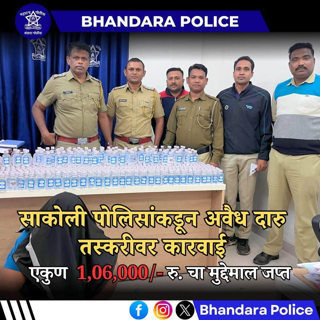 ЁЯОм рд╕рд╛рдХреЛрд▓реАтАУрдкрд╡рдиреАрдд рдкреЛрд▓рд┐рд╕рд╛рдВрдЪреА рдзрдбрдХ: рдЕрд╡реИрдз рджрд╛рд░реВ рдЕрдбреНрдбреНрдпрд╛рдВрд╡рд░ рд╕рд▓рдЧ рдХрд╛рд░рд╡рд╛рдИ; тВ╣1,06,640 рдХрд┐рдорддреАрдЪрд╛ рдореБрджреНрджреЗрдорд╛рд▓ рдЬрдкреНрдд тАФ SP рдиреВрд░реБрд▓ рд╣рд╕рди рдпрд╛рдВрдЪреНрдпрд╛ рджрд┐рд╢рд╛рдирд┐рд░реНрджреЗрд╢рд╛рдиреБрд╕рд╛рд░ рдореЛрд╣рд┐рдо рд╡реЗрдЧрд╛рдд