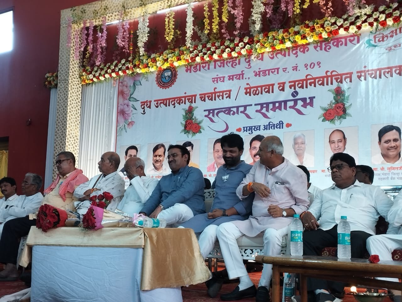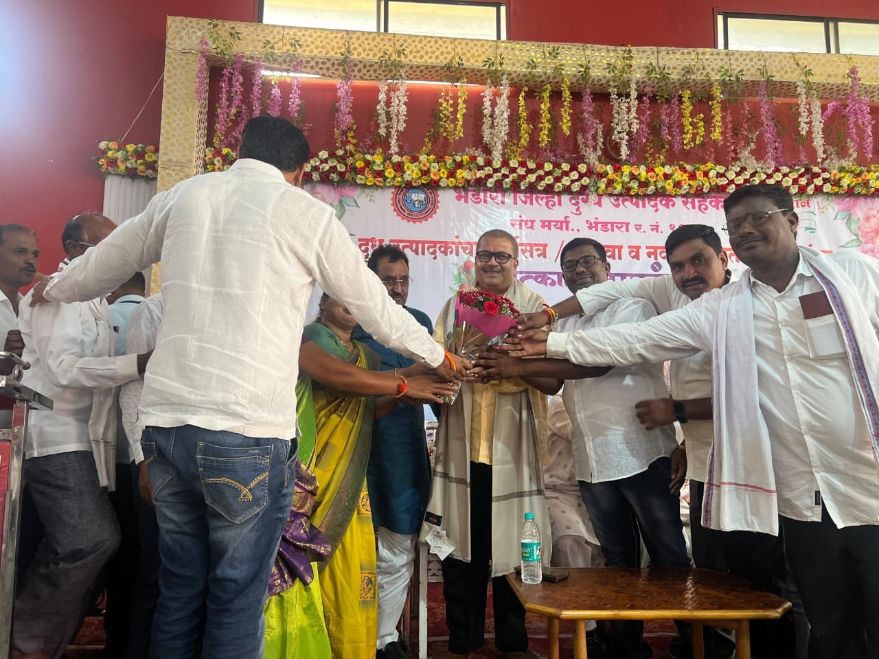 рдорд╛.рд╢реНрд░реА.рдПрдХрдирд╛рде рдлреЗрдВрдбрд░ рдЙрдкрд╛рдзреНрдпрдХреНрд╖ рдЬрд┐.рдк.рднрдВрдбрд╛рд░рд╛ рддрд╕реЗрдЪ рдорд╛. рд╢реНрд░реА.рдкреНрд░рджреАрдк рдкрдбреЛрд│реЗ рд╕рдВрдЪрд╛рд▓рдХ BDCC рднрдВрдбрд╛рд░рд╛,рдорд╛. рд╢реНрд░реА. рдЖрд╢реБ рдЧреЛрдВрдбрд╛рдиреЗ рдЬрд┐рд▓реНрд╣рд╛ рдЕрдзреНрдпрдХреНрд╖ рдмреАрдЬреЗрдкреА рднрдВрдбрд╛рд░рд╛,рд╢реНрд░реА.рд╢рд┐рд╡рд░рд╛рдЬ рдЧрд┐рд░реЛрдкреБрдВрдЬреЗ,рд╢реНрд░реА.рд╢рд░рджрдЬреА рдЗрдЯрд╡рд▓реЗ рддрд╕реЗрдЪ рдкрджрд╛рдзрд┐рдХрд╛рд░реА рдЙрдкрд╕реНрдерд┐рдд рд╣реЛрддреЗ.рддрд╕реЗрдЪ рд╕рд░реНрд╡ рдирд╡рдирд┐рд░реНрд╡рд╛рдЪрд┐рдд рд╕рдВрдЪрд╛рд▓рдХрд╛рдВрдЪрд╛ рд╢рд╛рд▓ рд╢реНрд░реАрдлрд▓ рдкреБрд╖реНрдк рдЧреБрдЪреНрдЫ рджреЗрдКрди рд╕рддреНрдХрд╛рд░ рдкреНрд░рдореБрдЦ рдорд╛рдиреНрдпрд╡рд░ рдпрд╛рдВрдЪреНрдпрд╛ рд╣рд╕реНрддреЗ рдХрд░рдгреНрдпрд╛рдд рдЖрд▓реЗ. рддреНрдпрд╛рд╡реЗрд│реА рдкреНрд░рд╛рд╕реНрддрд╛рд╡рд┐рдХ рдирд╡рдирд┐рд░реНрд╡рд╛рдЪрд┐рдд рдЕрдзреНрдпрдХреНрд╖ рдорд╛.рд╢реНрд░реА.рд╡рд┐рд▓рд╛рд╕рдЬреА рдХрд╛рдЯреЗрдЦрд╛рдпреЗ рднрдВрдбрд╛рд░рд╛ рдЬрд┐рд▓реНрд╣рд╛ рджреБрдЧреНрдз рдЙрддреНрдкрд╛рджрдХ рд╕рд╣рдХрд╛рд░реА рд╕рдВрдШ рднрдВрдбрд╛рд░рд╛ рдпрд╛рдВрдиреА рдХреЗрд▓реЗ. рддрд╕реЗрдЪ рд╡рд┐рд╡рд┐рдз рд╕рдорд╕реНрдпрд╛рд╡рд░ рдЪрд░реНрдЪрд╛ рд╕реБрджреНрдзрд╛ рдХрд░рдгреНрдпрд╛рдд рдЖрд▓реА. рддреНрдпрд╛рд╡рд░ рдЖрдкрдг рдкреНрд░рд╛рдорд╛рдгрд┐рдд рдХрд╛рдо рдХрд░реБрди рд╕рд░реНрд╡рд╛рдиреА рд╕рд╣рдХрд╛рд░реНрдп рдХрд░реБрди рднрдВрдбрд╛рд░рд╛ рдЬрд┐рд▓реНрд╣рд╛ рджреБрдЧреНрдз рд╕рдВрдШрд╛рд▓рд╛ рдЧрддрд┐рдорд╛рди рдХрд░рд╛рд╡реЗ рд╡ рд╢рд╛рд╕рдирд╛рдХрдбреВрди рдЖрдордЪреА рдХрд╛рд╣реА рдорджрдд рд▓рд╛рдЧрд▓реА рддрд░ рдЖрдореНрд╣реА рдЖрдкрд▓реНрдпрд╛ рдкрд╛рдареАрд╢реА рдЦрдВрдмреАрд░ рдкрдгреЗ рдЙрднреЗ рдЖрд╣реЗ.рдЕрд╕ рд╡рдХреНрддрд╡реНрдп рдЖрдорджрд╛рд░ рд░рд╛рдЬреВ рдорд╛рдгрд┐рдХрд░рд╛рд╡рдЬреА рдХрд╛рд░реЗрдореЛрд░реЗ рдпрд╛рдВрдиреА рдХреЗрд▓реЗ.