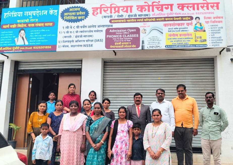 ЁЯУ╕ (рдЫрд╛рдпрд╛рдЪрд┐рддреНрд░рд╛рдд) тАФ рд╣рд░рд┐рдкреНрд░рд┐рдпрд╛ рдХреЛрдЪрд┐рдВрдЧ рдХреНрд▓рд╛рд╕реЗрд╕рдЪреНрдпрд╛ рд╕рднреЗрдирдВрддрд░ рд╕рдВрдЪрд╛рд▓рд┐рдХрд╛ рд▓рд▓рд┐рддрд╛ рдЧреБрдВрдЬреАрдЯреЗ, рд╕рдВрдореЛрд╣рди рддрдЬреНрдЮ рдбреЙ. рдЬрдЧрджрд┐рд╢ рд░рд╛рдареЛрдб рдЖрдгрд┐ рдкрд╛рд▓рдХ рдкреНрд░рддрд┐рдирд┐рдзреА рдпрд╛рдВрдЪрд╛ рдкреБрд╖реНрдкрдЧреБрдЪреНрдЫ рджреЗрдКрди рд╕рдиреНрдорд╛рди рдХрд░рдгреНрдпрд╛рдд рдЖрд▓рд╛. рдХрд╛рд░реНрдпрдХреНрд░рдорд╛рдд рдкрд╛рд▓рдХ, рд╢рд┐рдХреНрд╖рдХ рдЖрдгрд┐ рд╡рд┐рджреНрдпрд╛рд░реНрдереА рдореЛрдареНрдпрд╛ рдЙрддреНрд╕рд╛рд╣рд╛рдиреЗ рд╕рд╣рднрд╛рдЧреА рдЭрд╛рд▓реЗ.