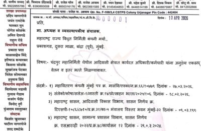 मुंबई, दि. २७ :- महाराष्ट्र राज्यातील वर्ग चारच्या कर्मचाऱ्यांव्यतिरिक्त ज्यांचे भविष्यनिर्वाह निधी लेखा प्रधान महालेखाकार (ले.व ह.), महाराष्ट्र कार्यालयामधे ठेवले जातात, त्यांच्या भविष्य…